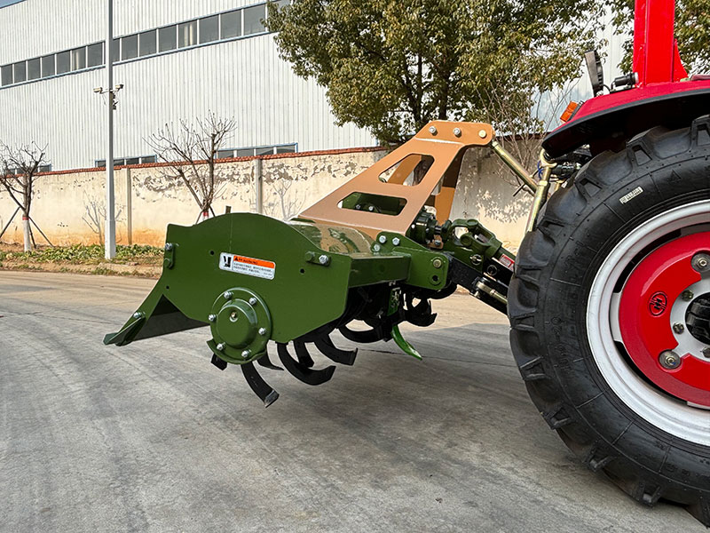 大棚王”系列旋耕机箱体独特的结构设计可配套多款农业大棚专用拖拉机,实现8~16厘米的作业深度。由拖拉机动驱动作业,利用刀轴上旋耕刀的旋转运动和机具前进的复合运动对土地进行旋耕碎土作业,能一次完成耕、耙、平的作业。具有旱田碎土充分,地面平整,水田泥烂成浆,适应性广、作业效率高等优点。