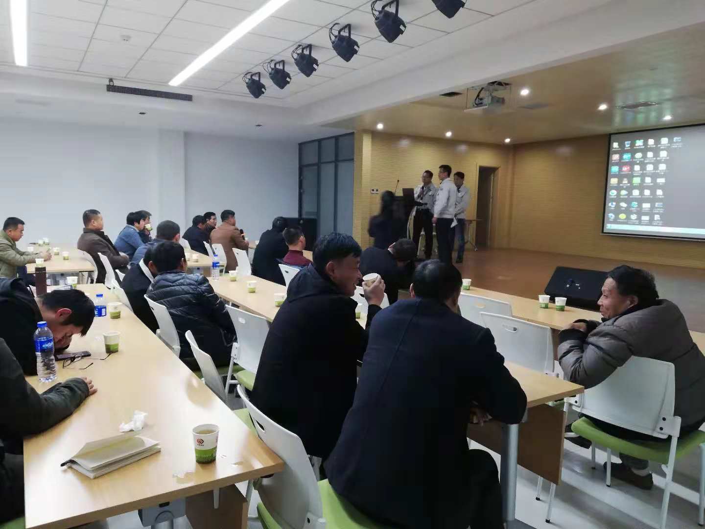 亚澳公司技术部门就产品在劳动生产中遇到问题来回答所有合作社的疑问。技术部门领导耐心的对每一个提问者进行回答,并承诺,亚澳公司所生产的机具,三包期为三年。质量实行可追溯,公司有专一的售后服务部门,一旦在作业时出现问题,售后部门全力在第一时间给大家解决。