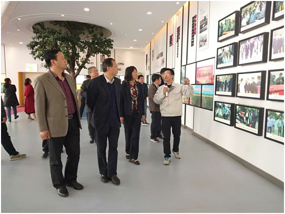 一行人首先来到大厅,亚澳公司销售经理王红卫给各位领导详细介绍了展厅里亚澳公司的主要机具,及亚澳公司的发展历程。