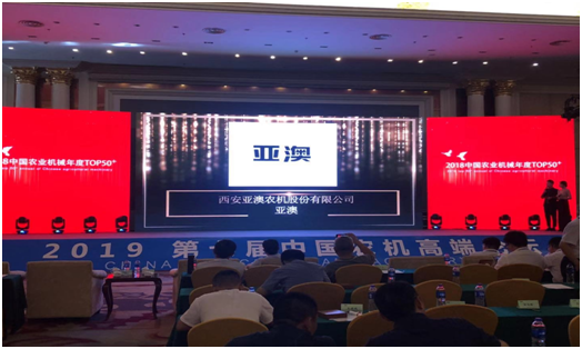 2019年7月19日~20日,由中国农业机械学会、农业装备产业技术创新战略联盟、国家农机具质量监督检验中心主办,中联重科股份有限公司、芜湖市三山区人民政府协办的“2019第七届中国农机高端论坛暨2018中国农业机械年度TOP50+颁奖盛典”在安徽省芜湖市召开。