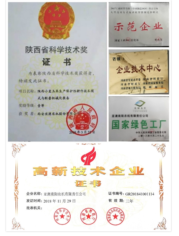 pa旗舰厅官网坚持“产品就是人品、内在是我心、外在是我脸”的品质原则,多功能变速旋耕机、旋播施肥机、联合耕整机、双轴灭茬机、精量免耕播种机、深松机等产品在耕整机械(主机配套40-300马力)领域处于行业前列, 累计取得自主专利78项。2018年“亚澳”商标获得中国驰名商标,产品多次被中国农机化协会、中国农业机械流通协会、中国农业机械工业协会授予“AAA级信用企业”、“技术进步奖”、“产品创新奖”、“全国农机用户满意品牌”、“最具影响力品牌”,被国家相关部委单位授予农业部科技进步三等奖、星火计划金奖、西安市科技进步一等奖、陕西省行业之星企业,“专精特新”中小企业,南阳市级科技百强企业等多项殊荣;国家型高新技术企业,在农机行业中具有较高的美誉和知名度,得到了社会的广泛认可。