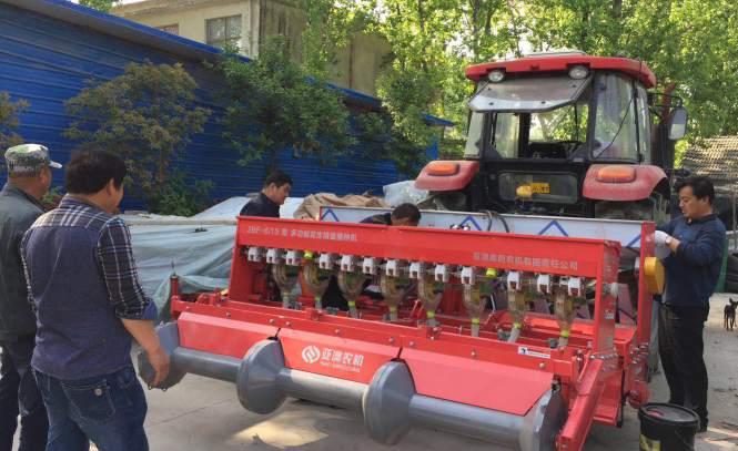 机具组装好后,用户开着拖拉机,带着种子,开始到田间耕种。