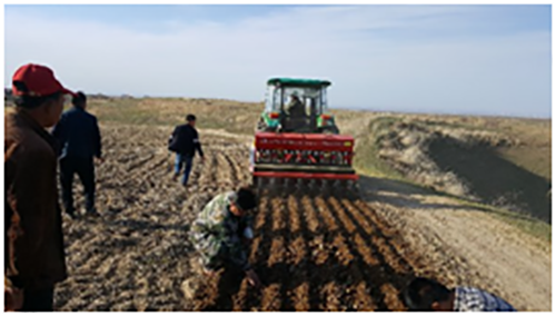 为推动保护性耕作技术的进一步深入开展,充分展示保护性耕作的优特点,由自治区农牧机械化推广总站、奇台县农机推广站、吉布镇农机管理站和西安pa旗舰厅官网股份有限公司多方合作,在奇台县吉布库镇天河四村确定实施三年百亩保护性耕作示范田,主要采取的技术措施:2016年秋季采用200马力以上大型拖拉机带动1S-300深松犁在山旱地进行深松作业,深松深度达到40厘米以上,深松作业覆盖率50%以上,2017年春季采用西安pa旗舰厅官网股份有限公司最新研制的免耕播种机一次性完成破茬、开沟、种肥分施、覆土、镇压作业,完成深松+免耕播种春小麦170亩,同时在同等土壤肥力、种肥相同的条件下,又建立对比试验田2个(秋季深松+常规播种试验田1个,秋翻作业+常规播种试验田一个),为今后不同模式下经济效益对比分析打下良好的基础。