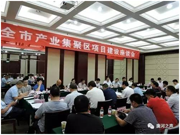 8月8日,南阳市产业集聚区项目建设座谈会在唐河县召开。市发改委主任乔长恩及唐河县领导周天龙、王天清、王全广等出席会议。各县(区)产业集聚区负责同志、市联席办工作人员以及唐河产业集聚区部分企业代表参加了会议。